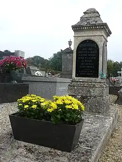 À sa mort, il a été inhumé à Aubenton, le village de sa première épouse Adèle, née Landragin. Il s’était remarié avec Marie Adolphine Le Coispellier, de Brest[10].