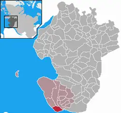 La commune se situe dans la pointe au sud-ouest de l'arrondissement, la digue du polder est sur la rive nord de l'estuaire de l'Elbe dans la mer du Nord. Il existe encore des schorres sur son territoire.