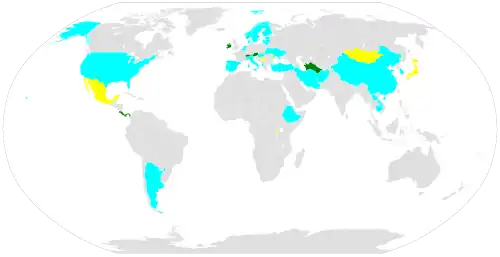 Cambodge[3], neutre depuis la déclaration du roi Norodom Sihanouk en 1955[13] durant la guerre du Viêt Nam ;