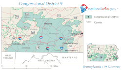 Le 9e district congressionnel de Pennsylvanie est situé dans la partie centrale-est de l'État et englobe les comtés de Bradford, Columbia, Lebanon, Montour, Northumberland, Schuylkill, Sullivan, Susquehanna et Wyoming, ainsi qu'une partie des comtés de Berks, Luzerne et Lycoming.