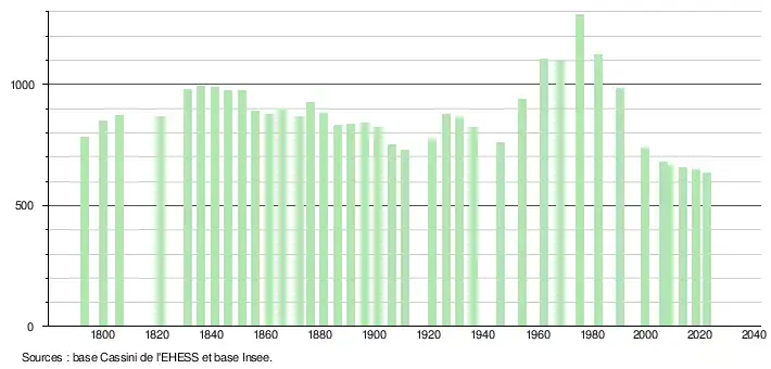 - ↑ Fiches Insee - Populations de référence de la commune pour les années 2006, 2007, 2008, 2009, 2010, 2011, 2012, 2013, 2014, 2015, 2016, 2017, 2018, 2019, 2020, 2021 et 2022.