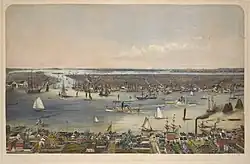 Le port devient le premier du pays ; les installations durent s'agrandir dans les années 1850-1860, notamment à Brooklyn et au New Jersey. Les premières jetées maçonnées (les Piers) apparurent dans les années 1870[117]. En 1900, le port de New York était le premier du monde[118].