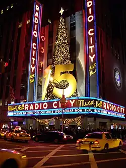 New York devint par ailleurs un centre culturel d'importance mondiale. Ce rôle s'amplifia vers la fin des années 1930 avec l'afflux de réfugiés européens, qui comportaient de nombreux intellectuels, musiciens et artistes. Les quartiers de Greenwich Village et de Harlem devinrent les principaux lieux de création artistique et littéraire. Avec l'Armory Show (1913) puis l'ouverture du Museum of Modern Art (1929), du Whitney Museum of American Art (1931) et du musée Solomon R. Guggenheim (1937), New York devint l'une des capitales mondiales de l'art moderne[127]. Malgré la concurrence de Los Angeles, New York resta jusqu'en 1945 un centre cinématographique majeur : elle exerçait le contrôle financier de l'industrie du 7e art, produisait des films dans ses studios et possédait de très nombreuses salles de projection[128]. Les nouveaux médias se développèrent dans la cité : tabloïds, chaînes de radio (CBS et NBC).