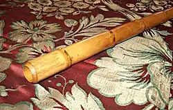 Une autre bague de métal vient parfois protéger l'extrémité de l'instrument afin de le rendre plus solide. Le roseau doit avoir sept segments (six nœuds) et les trous sont dissymétriques car répartis en un groupe de trois, placés dans les quatrième et cinquième segments, et un groupe de deux placés dans les cinquième et sixième segments. Il est parfois décoré à la pyrogravure.