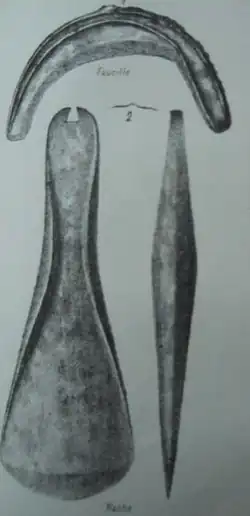 - plus de 3 000 débris de poteries, appartenant à plus de 340 vases différents, confectionnés sans l'emploi du tour, présentant des ressemblances avec celles trouvées à Baume-les-Messieurs vers 1865 ;