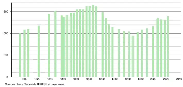 - ↑ Fiches Insee - Populations de référence de la commune pour les années 2006, 2007, 2008, 2009, 2010, 2011, 2012, 2013, 2014, 2015, 2016, 2017, 2018, 2019, 2020, 2021 et 2022.