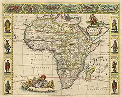 En 1570, sur cette carte hollandaise, le Niger est lié au Sénégal. Le Rio Real se jette dans le golfe du Bénin.
