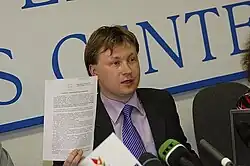 Nikolaï Alekseïev à la conférence de presse de la fierté slave, le 5 mai 2009[2].