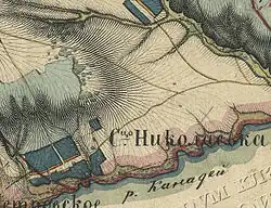 Le 27 septembre 1839, le capitaine Nikolaï Alexandrovitch Nassakine (1795-1859) achète à la comtesse Ekaterina Petrovna Tolstoï son domaine près du village de Ponika avec 158 paysans de sexe masculin[3]; c'est sur ces terres qu'apparaissent les premières maisons de ce qui allait devenir Nikolaïevka, nommé ansi d'après le nom de baptême du nouveau propriétaire. En 1842, les registres paroissiaux de Ponika mentionnent pour la première fois des paroissiens venus de Nikolaïevka[4]. La plupart des paysans proviennent de Ponika (les Samoïlov, Makhaline, Loguinov, Touchanov, Matveïev, Malechine, etc.) et d'autres de Ryzleï (les Roussakov, Tchourakov, Denissov, etc.) ou d'Elchanka, de Komarovka, de Samaïkino, et de Vyazovka et d'autres villages où le capitaine Nassakine avait des paysans.