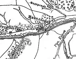 En 1874, l'arrivée du chemin de fer provoque la fusion de Nikolaïevka avec le village de Klioutchiki (où se trouve la gare)[8]. Lorsque le chemin de fer de Syzran-Vyazma est lancé en 1893, Nikolaïevka prend de l'importance[4]. Une école de zemtsvo y ouvre en 1893[9]. En 1897, Nikolaïevka (qui fait partie de la volost de Nikoulino) comprend 694 habitants[10] et en 1900, 731 habitants (366 hommes et 365 femmes)[9]. L'église Saint-Nicolas est construite au début du XXe siècle.