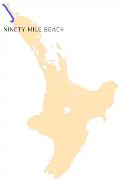 Ninety Mile Beach, de son nom officiel Te-Oneroa-a-Tōhē/Ninety Mile Beach, est une plage située à l’extrême nord de la Nouvelle-Zélande, sur la côte occidentale de l’île du Nord. Malgré son nom, la plage s’étend sur 55 miles, soit 88 km.