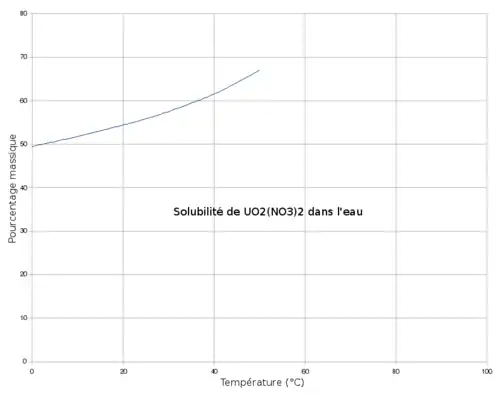 <ref>incorrecte : aucun texte n’a été fourni pour les références nomméesifa - ↑ « Nitrate d'uranyle » dans la base de données de produits chimiques Reptox de la CSST (organisme québécois responsable de la sécurité et de la santé au travail), consulté le 25 avril 2009