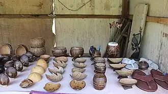 Les coques, coupées en deux permettent de fabriquer des bols pour boire ou conserver des liquides, des poudres, des graines,...