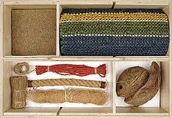 - de la sparterie qui, pour la fabrication de nattes, de carpettes, de passages et surtout de tapis-brosses, utilise une ficelle, le « filé de coco » (coir yarn), obtenu à partir de noix qui ne sont pas parvenues à maturité complète (ces fibres étant plus souples). Ces fibres sont aussi utilisées pour fabriquer des scourtins, paniers souples utilisés pour la fabrication de l'huile d'olive ;