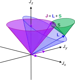 où L est le vecteur de moment angulaire, S le vecteur de spin de l'électron, et ℏ la constante de Planck réduite.