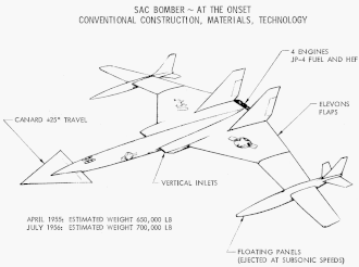 Pendant quelque temps, l'industrie aéronautique étudie la question. Depuis le milieu des années 1940, il y a beaucoup d'intérêt dans l'utilisation d'un avion à propulsion nucléaire dans le rôle de bombardier[4],[5],[N 1]. Dans un turboréacteur conventionnel, la puissance est fournie en accélérant l'air, ce qui est obtenu en le chauffant via la combustion de carburant. Dans un moteur nucléaire, la chaleur est fournie par un réacteur, bien qu'une petite quantité de carburant classique soit emportée pour être utilisée lors des décollages et des passages à grande vitesse. Une alternative consiste à utiliser des carburants hautement énergiques (zip fuels - Zip fuels (en)), enrichis au bore, qui améliore la densité d'énergie du carburant d'environ 40 %[6], et peuvent être utilisés sur des versions de turboréacteurs déjà existants[6]. Les carburants hautement énergiques semblent offrir des améliorations de performance suffisantes pour produire un bombardier stratégique pouvant atteindre des vitesses supersoniques.