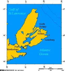 Localisation de North Sydney à l'est de l'île du Cap-Breton.
