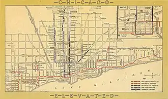 Plusieurs tronçons des lignes rouge, mauve et brune actuelles furent construits par la Northwestern Elevated avant son incorporation dans le Chicago Rapid Transit en 1924[1].