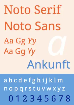Plusieurs des polices sont développées par Monotype Imaging, les polices latines Noto Sans et Noto Serif sont basées sur les polices de caractères Droid Sans ou Open Sans, et Droid Serif de sa filiale Ascender Corporation.