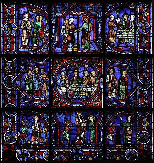 - 1 2 3 4 5 6 7 8 9 10 11 12 « Notre-Dame de la Belle Verrière et vie publique du Christ »(Archive.org • Wikiwix • Archive.is • Google • Que faire ?), vitrail 30a, « La cathédrale de Chartres »(Archive.org • Wikiwix • Archive.is • Google • Que faire ?).