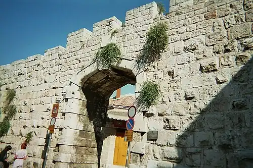 Elle fut construite entre 1886 et 1898 par la France, à la demande du consul français, pour permettre un accès facile aux lieux saints aux habitants du quartier chrétien et du Russian compound, et pour les pèlerins hébergés à l'hospice Notre-Dame de France, lui même achevé en 1886 et située juste en face[1],[2]. Elle fut aussi baptisée Bab Sultan Abd ul Hamid (Porte du sultant Abdül Hamid) par le sultan ottoman Abdülhamid II qui a autorisé sa construction quand Jérusalem et la Palestine étaient sous administration ottomane[3]