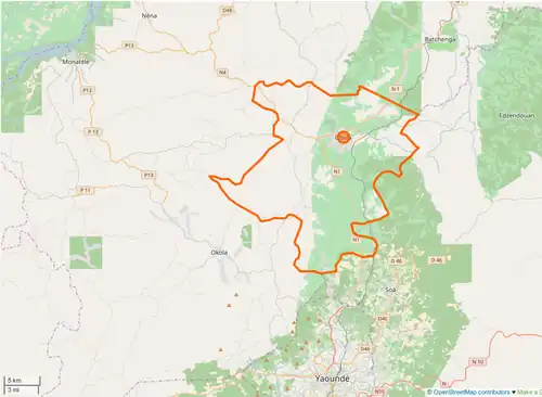 La ville est située sur la route nationale 1 (axe Yaoundé-Bertoua) à 38 km au nord de Yaoundé et à 46 km à l'ouest du chef-lieu départemental Monatélé. La localité drainée par la rivière Afoumla et son affluent le Ntsas se trouve dans le bassin versant du fleuve Sanaga.