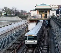 Après avoir emporté le concours d'architecture qui portait sur les stations, les ponts, les viaducs et les tranchées à ciel ouvert[4], Otto Wagner (1841-1918) devient l'architecte en chef et le planificateur général de ce chemin de fer métropolitain léger en grande partie aérien qui caractérise encore aujourd'hui le paysage urbain viennois et correspond maintenant aux lignes U4 et U6 du métro[5],[6].