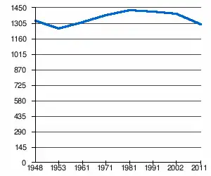 - 1 2 (sr + en) « Livre 20 : Vue d'ensemble comparative de la population en 1948, 1953, 1961, 1971, 1981, 1991, 2002 et 2011, données par localités) » [PDF], pages du recensement de 2011 en Serbie - Institut de statistique de la république de Serbie, (consulté le )