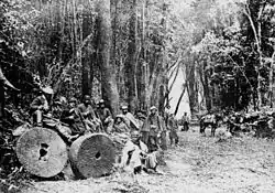 Des non-Mapuches s’étaient mis à acheter des terres araucanes au sud du Biobío dès la fin du XVIIIe siècle, et en 1860, les terres sises entre les fleuves Biobío et Malleco étaient pour la plupart en possession de Chiliens[16]. L’essor du commerce des céréales (ciclo triguero) accrut encore la propension des Chiliens à acquérir des terres en Araucanie et donna lieu à de multiples escroqueries et fraudes au détriment des Mapuches[17]. Par la duperie, un petit nombre de spéculateurs sut s’emparer de vastes étendues, puis assura sa mainmise sur ces propriétés avec l’aide d’hommes de main[18].