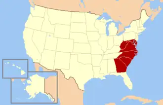 L’« Old South » est souvent défini en opposition au Deep South qui inclut l'Alabama, la Louisiane, la Géorgie et le Mississippi, et il est souvent différencié des États frontaliers intérieurs tel que le Kentucky et la Virginie-Occidentale et les États périphériques de Floride et du Texas au Sud.