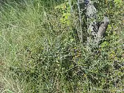 - Port : buissonnant, arbuste rameux, épineux, les branches sont quadrangulaires et minces.