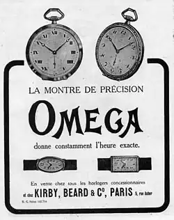 En 1894, l'entreprise lance le calibre Omega 19 lignes[10], qui donnera son nom à l'entreprise. Le nom est déposé dès le . Ce produit est une réussite totale aussi bien technique que commerciale : vingt ans plus tard, en 1914, il représente encore le tiers de la production d'Omega[11]. En 1896 : Omega remporte sa première récompense. L'entreprise occupe près de 800 personnes et fabrique 100 000 montres Omega par année. On la considère déjà comme la « plus importante fabrique d'horlogerie de Suisse ». Les premières contrefaçons apparaissent[12]. Après la mort des deux fondateurs, l'entreprise est transformée en société anonyme au capital de 250 000 francs ().