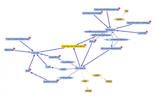 Cette définition rend possible l'écriture de langages destinés à implémenter des ontologies. Pour construire une ontologie, on dispose d'au moins trois de ces notions :