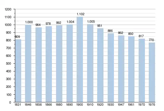 - Sources : INS, Rem. : 1831 jusqu'en 1970 = recensements, 1976 = nombre d'habitants au 31 décembre[2].