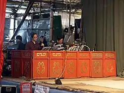 Dans l’opéra cantonais, le chant est plus important que la musique[1]. Des instruments traditionnels chinois sont joués par l'orchestre : erhu, yangqin, pipa, flûte et percussions[1]. Des instruments occidentaux sont aussi utilisés par l'opéra cantonais contemporain, comme le violoncelle, le saxophone et même le violon qui remplace parfois l'erhu[1].