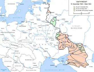 - ensuite du (début de l'opération Uranus) au (traversée du Dniepr), le tournant de la guerre, l'Armée rouge reprenant difficilement l'initiative ;