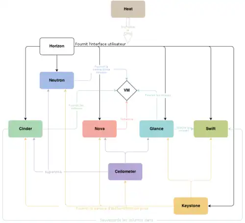 OpenStack possède une architecture modulaire qui comprend de nombreux composants[25] :