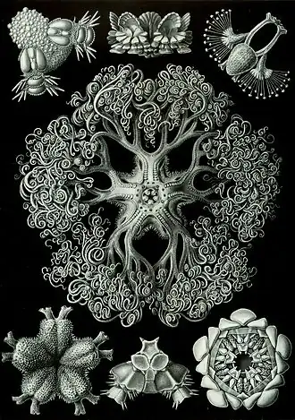 Ophiothrix fragilis juvénile, dessinée par Ernst Haeckel.- Ophioderma wahlbergi munie de 7 bras. Cette anomalie peut résulter d'un problème de développement ou de régénération.