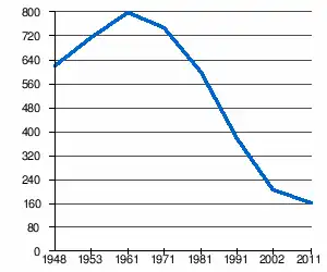 | 619 | 715 | 799 | 748 | 597 | 375 | 204[2] | 162[1] |