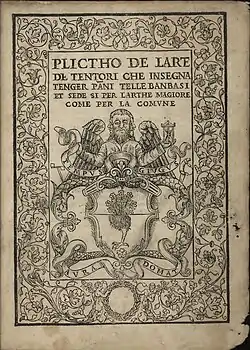 36. (it) Giovanventura Rosetti, « Plictho de l'arte de tentori che insegna tenger pani, telle, banbasi et sede si per l'arthe magiore come per la comune », sur Internet Archive, (consulté le ).