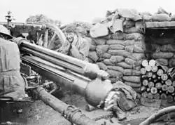 À partir de 1915, les 18-pounders britanniques du front de l'Ouest tirèrent des shrapnel pour couper les fils de fer barbelés ennemis et des obus HE pour attaquer les troupes dans leurs tranchées. À partir de 1916, les mortiers moyens et légers furent de plus en plus utilisés dans le premier rôle.
