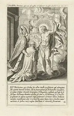 La participation de l'ordre de Prémontré à la Réforme catholique se manifeste aussi par le nombre d'évêques réformateurs originaires de l'ordre, comme Richard Redman(en) à Saint-Asaph, Nicolas Psaume à Verdun, ou Johann Lohel à Prague, ou d'auteurs spirituels comme Wilhelm Eiselin(de), Pierre de Waghenare, François Wennius, Francis Wichmans(en), Épiphane Louys ou encore Léonard Goffiné(en). Autre effort témoignant de l'importance accordée par l'ordre à la diffusion des idées de la Contre-Réforme parmi les laïcs, le tiers-ordre tombé en désuétude est restauré en 1751 par un bref d'approbation du pape Benoît XIV[60]. Enfin, les Prémontrés espagnols participent à l'évangélisation du Nouveau-Monde, où certains reçoivent la charge d'évêque, comme Cristóbal Martínez de Salas(en) à Panama en 1625, ou Juan Benito Garet y Arlovi à León en 1708.