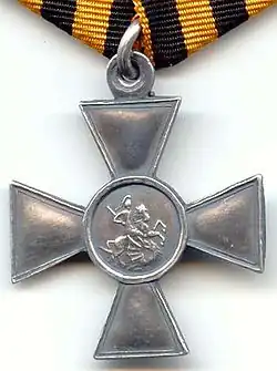 ![]() Insigne de l’ordre de Saint-Georges de IVe classe (Russie impériale) |