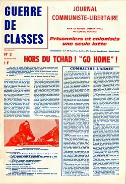 - ↑ Notice de Guerre de classes dans René Bianco, « Répertoire des périodiques anarchistes de langue française : un siècle de presse anarchiste d’expression française, 1880-1983 », Aix-Marseille, 1987.
