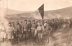 Yané Sandanski (à gauche) avec des membres du VMRO soutenant l'armée bulgare lors des guerres balkaniques.