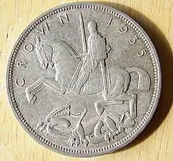 Le revers des pièces anglaises, couronnes ou souverains, présentaient fréquemment Saint Georges terrassant le dragon.