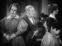 Un aspect typique des screwball comedies est le recours systématique à des personnages secondaires comiques. La MGM avait sous contrat des acteurs spécialistes de ce type de rôles et bien connus du public, Mary Boland (Mrs Bennet), Edmund Gwenn (Mr Bennet), Melville Cooper (Mr Collins) et l'excentrique Edna May Oliver (Lady Catherine), célèbre pour ses rôles de vieille dame aigrie mais au bon cœur[24]. Pour que Mr Collins puisse rester le personnage ridicule imaginé par Jane Austen, il a été nécessaire de changer sa profession. C'est ainsi que le clergyman du roman est devenu le bibliothécaire suffisant et prétentieux de Lady Catherine. En effet, selon une réglementation appliquée au cinéma américain durant la période de réalisation du film[N 18], il n'était pas autorisé de faire rire aux dépens de la religion en faisant d'un homme d'Église un personnage comique.