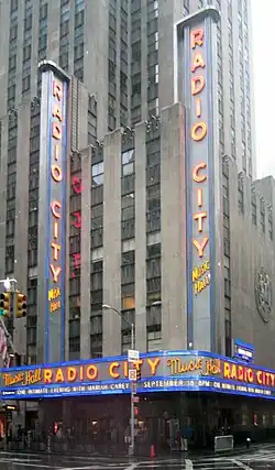 Le Radio City Music Hall dans le Rockefeller Center, présenta des films sur écran géant de 1933 à 1979.