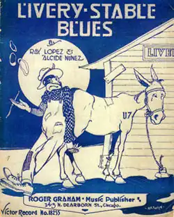 Le , l'Original Dixieland Jass Band entre dans l'histoire du jazz en enregistrant pour le label « Victor Talking Machine Company » ce qui est considéré comme le premier disque de jazz[2] : un 78 tours Livery Stable Blues (en) et Dixieland Jass Band One-Step (en). Lors de cet enregistrement « historique » de 1917 jouent Nick La Rocca (cornet), Larry Shields (clarinette), Eddie Edwards (trombone), Henry Ragas (piano) et Tony Sbarbaro (batterie). Le disque est mis sur le marché le . Il connaît un énorme succès, se vendant à plus d'un million d'exemplaires[3]. En août de la même année est enregistré Tiger Rag (en)[4] qui deviendra un standard de jazz. C'est le début d'une éphémère gloire pour l'ODJB, devenu Original Dixieland Jazz Band, qui enregistre pour Aeolian, Columbia (20 titres dont un nouveau tube : Soudan), Victor et Okeh. L'ODJB part pour l'Angleterre où il se produit pendant plusieurs mois (-). Henry Ragas étant mort, il est remplacé par J. Russel Robinson (en) au piano ; Eddie Edwards est lui remplacé par Frank Christian. En 1925, Nick La Rocca, à la suite d'une grave dépression nerveuse, dissout l'orchestre[3].