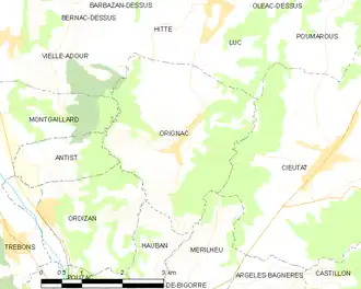 La commune d'Orignac se trouve dans le département des Hautes-Pyrénées, en région Occitanie[I 1].